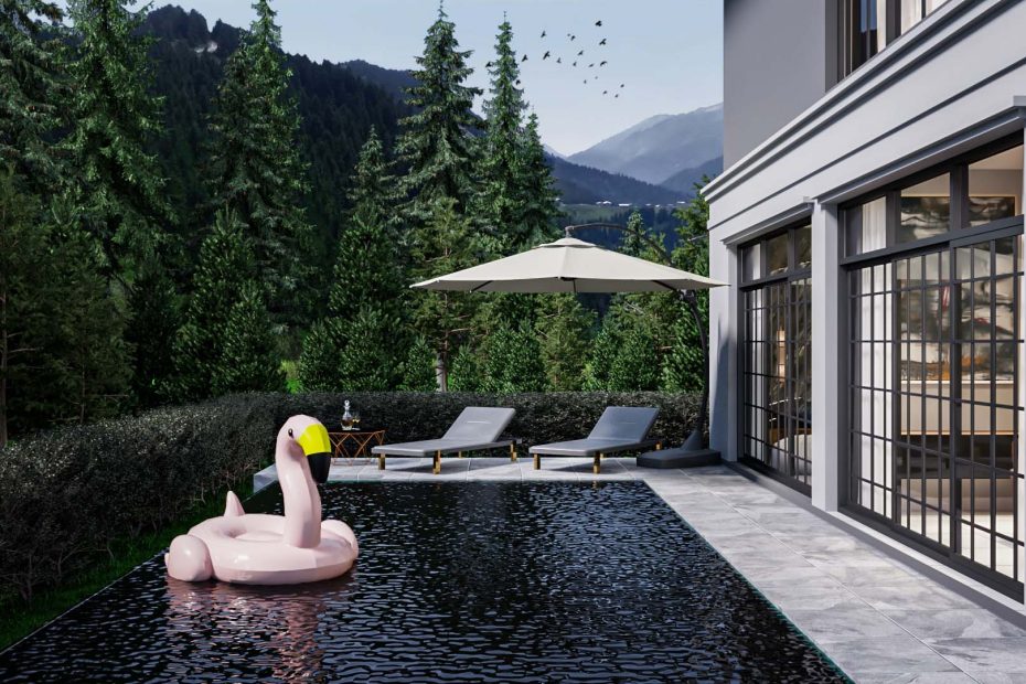 Its design is accentuated by large glass panels, allowing natural light to brighten the interior throughout the day, creating a refreshing and uplifting atmosphere for residents.