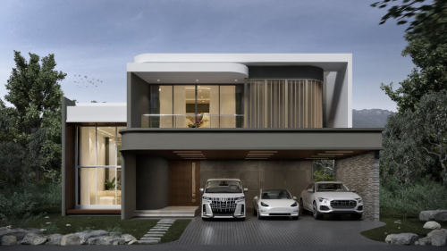 บ้านเดี่ยวสไตล์โมเดิร์น 2 ชั้น ขนาด 450 ตร.ม. สัมผัสความหรูหราและความทันสมัยกับบ้านเดี่ยวดีไซน์โมเดิร์น 2 ชั้น โดดเด่นด้วยเส้นสายสถาปัตยกรรมที่คมชัด เรียบหรู และทันสมัย ฟังก์ชันภายในจัดสรรพื้นที่กว้างขวาง รองรับการอยู่อาศัยของครอบครัวได้อย่างลงตัว พร้อมพื้นที่ใช้สอยที่ตอบโจทย์ทุกไลฟ์สไตล์ ทั้งการพักผ่อน ทำงาน และทำกิจกรรมร่วมกันของทุกคนในบ้าน