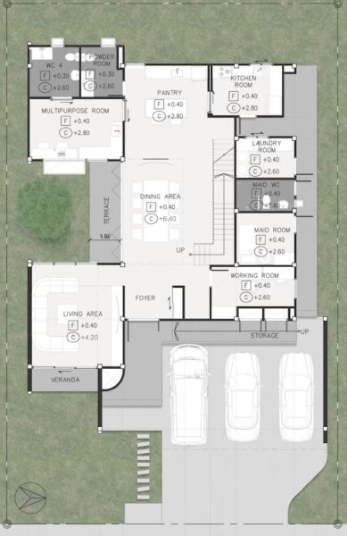 ● Balcony ● Pantry ● Living Area ● Dining Area ● Double volume ● Maid’s Room ● Laundry ● Multipurpose room