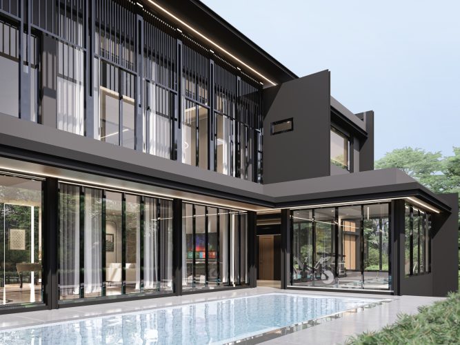 บ้านหรูสไตล์ Modern Luxury ขนาดพื้นที่กว้างถึง 800 ตร.ม. มาพร้อมสระว่ายน้ำส่วนตัวในโซน Backyard เพื่อความเป็นส่วนตัวสูงสุด บ้านหลังนี้ไม่ได้เป็นเพียงที่อยู่อาศัย แต่คือสถานที่ที่หลอมรวมความงดงามและความสะดวกสบายเข้าด้วยกันอย่างลงตัว